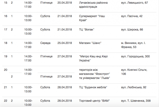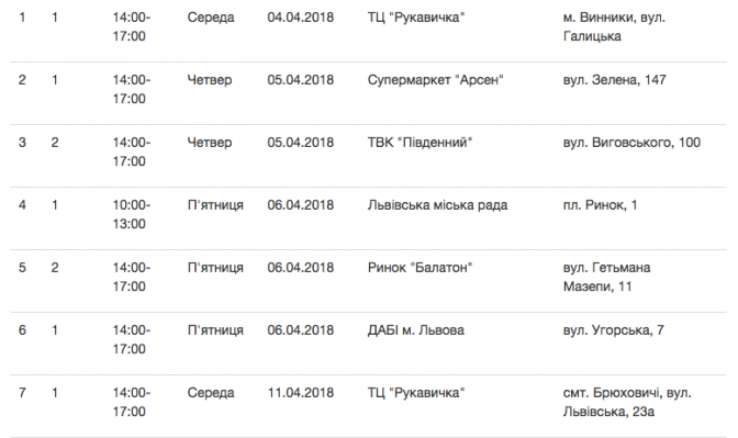 Графік стоянок Еко-буса у квітні 2018 року