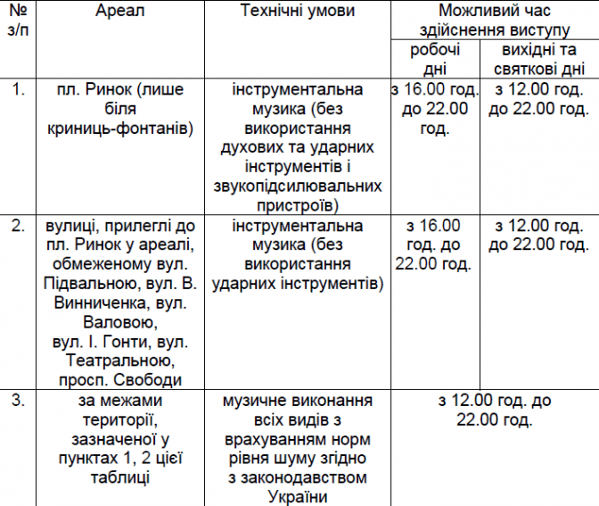 30 березня виконком міської ради затвердив концепцію організації вуличних виступів у громадських місцях Львова. У документі визначаються дозволені для виступів місця, час доби, а також музичні інструменти.