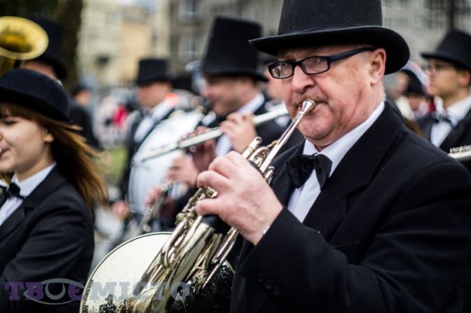 Рівно о першій від Оперного театру починає рухатися парад разом з оркестром. Спочатку на конях їдуть актори в ролях цісаря Франца-Йосифа та його дружини Єлизавети Баварської, за ними — ремісники, пивовари, аристократи та жителі тогочасного Львова. Вони зупиняються біля готелю, де чути урочисту промову з мікрофона. Усі слова зрозуміти важко — звук час від часу зникає.