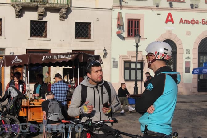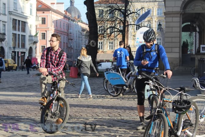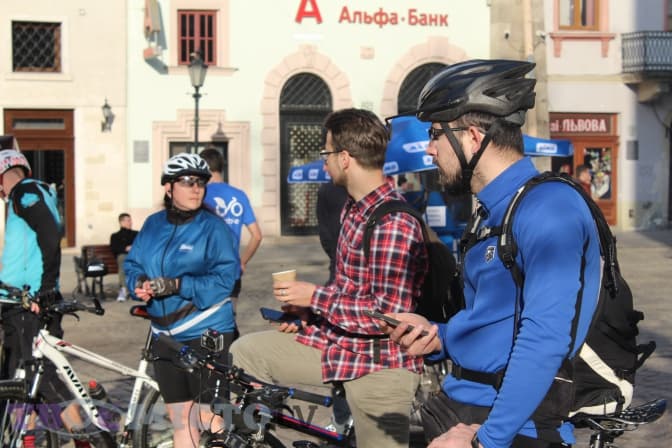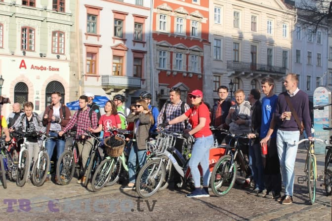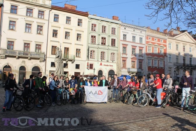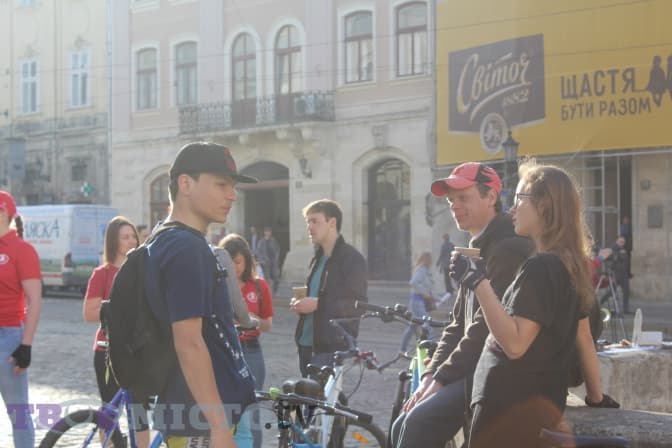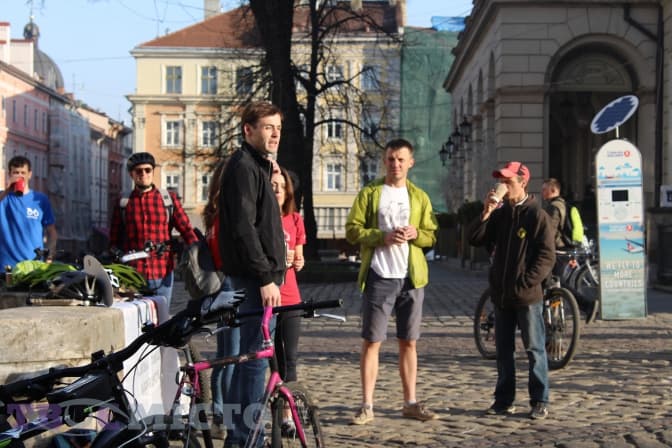 13 квітня у Львові на площі Ринок, біля фонтану Нептуна, відбулася традиційна акція «Велосипедом на роботу». З 8:00 до 9:00 учасники велоакції зібралися на велосніданок.