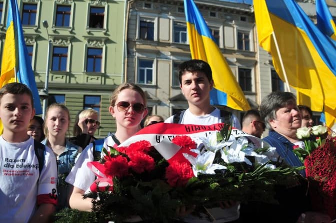 Під супровід Львівського муніципального оркестру присутні поклали квіти до пам’ятника Адаму Міцкевичу та Тарасу Шевченку. Опісля виконали Державний Гімн України і Польщі.