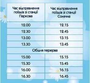 Працюватиме дитяча залізниця до 30 вересня. У літні місяці – по суботах, неділях та святкових днях, у травні та вересні – лише по неділях та святкових днях. Вартість квитків становить 12 грн для дорослих та 6 грн – для дітей.