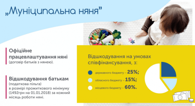 В Україні з нового року планують ввести поняття «муніципальна няня», згідно з яким батькам будуть компенсувати частину витрат на няню, пише «Урядовий портал» з посиланням на Прем'єр-міністра України Володимира Гройсмана.