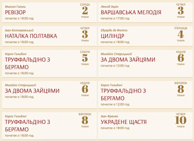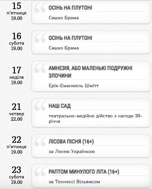 Детальніше про вистави і ціни – на сайті театру. Квитки можна придбати в інтернеті.