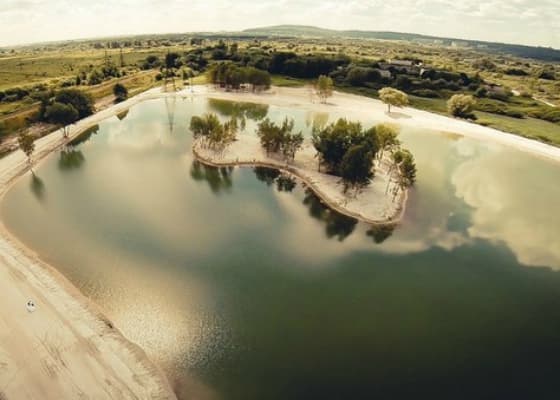 Пляж тут піщаний, а на на території озера можна не тільки позасмагати, а й орендувати альтанку, мангал чи зіграти у волейбол.