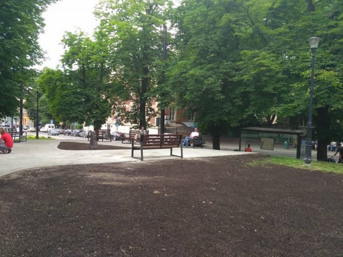 На площі Яцека Куроня у Львові завершують ремонтні роботи: встановлено лавочки і облаштовано додаткову доріжку для зручностей матерів з візочками та маломобільних груп населення, повідомляє прес-служба ЛМР.