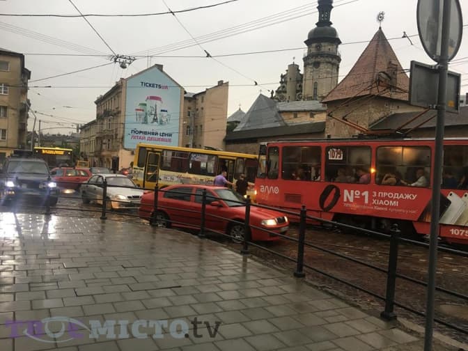 Зокрема, оминути автобус не може трамвай №2. Рух ускладнено також для автотранспорту.