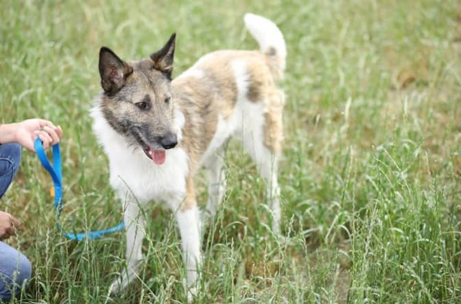 Вільфред. Молодий собака метис вівчарки. Наразі трішки розгублений та наляканий, але піддається навчанню, чемно гуляє на повідку і дружній до людей