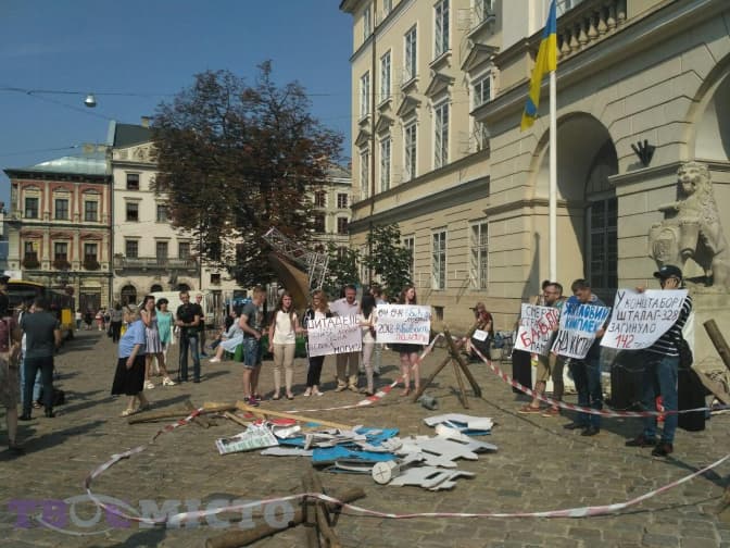 Тим часом представники Української галицької партії виступили проти забудови Цитаделі – місця, де був розташований концентраційний табір «Шталаг-328». Протестувальники розмістили біля входу в Ратушу імпровізований концтабір.