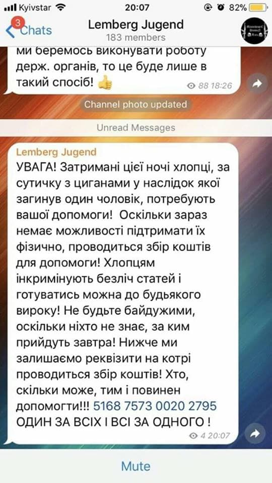 Тим часом у Telegram-каналі Lemberg Jugend з’явилася інформація про збір коштів на допомогу затриманим хлопцям. Станом на вечір 25 червня такого каналу у Telegram уже немає. Проте, за інформацією Zaxid.net, так само називався YouTube-канал, який пізніше мав назву «Твереза і зла молодь», а тепер взагалі видалений.