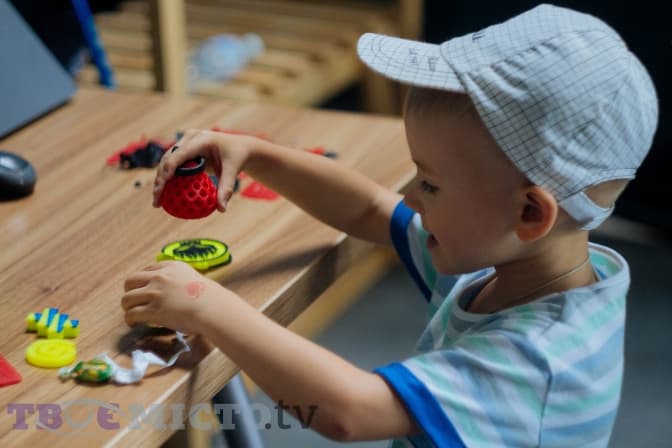 Також тут є справжній 3D-принтер, який студенти Харківського університету ім. Каразіна зібрали самі. Нині він може друкувати різні предмети із пластику. Один із студентів розповів Tvoemisto.tv, як одного разу, коли вони були у Житомирі, він залишив вдома гребінець, тож вирішив видрукувати собі такий на 3D-принтері. Пройшло вже півроку, а він досі ним користується. Діти ж впродовж виставки можуть спостерігати, як такі предмети із пластику можуть друкуватися у режимі реального часу.