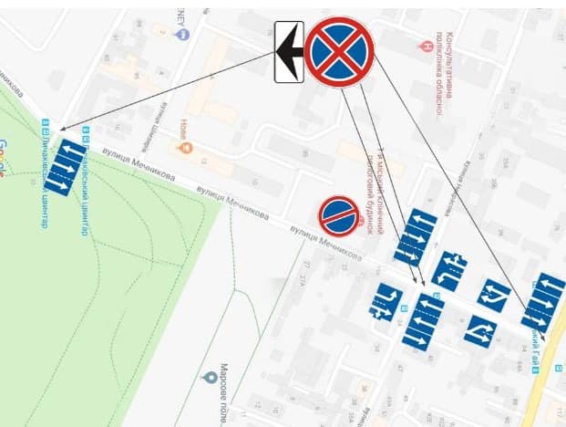Крім цього, на вул. Мечникова, у кишені, неподалік пологового будинку, вирішили заборонити паркування, натомість дозволили короткотривалу зупинку для авто.