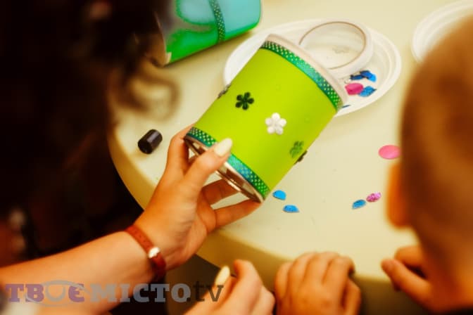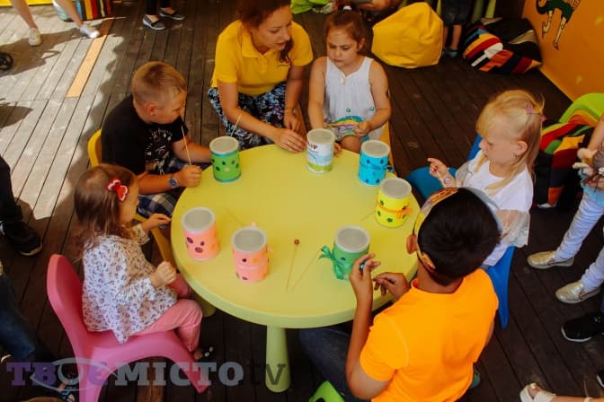 Так, під час одного з майстер-класів діти робили власні барабани, а допомогали їм у цьому представники із Центру музичного розвитку Tempo.