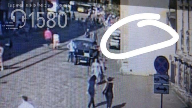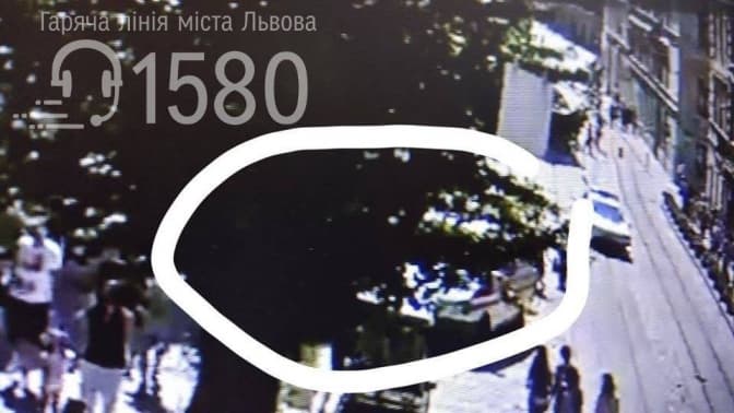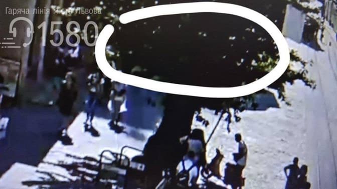 На скрінах з камер відеоспостереження обведено місце за деревом та за виступом, де перебувала постраждала на момент нападу на неї. Свідків події просять зателефонувати на 15-80, анонімність гарантується.
