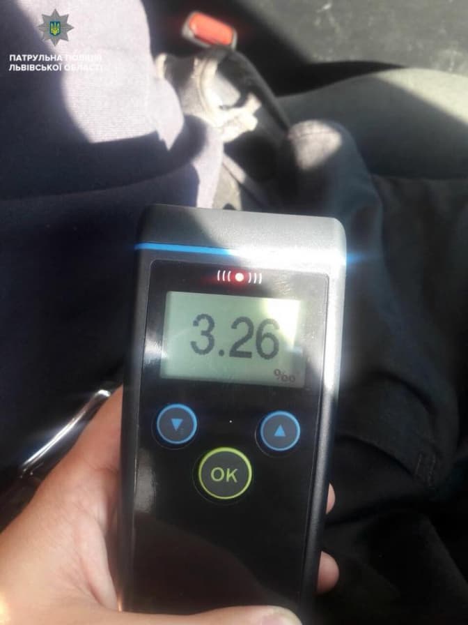 Патрульні запропонували пройти перевірку на стан алкогольного сп’яніння, на що водій погодився. У присутності двох свідків чоловік пройшов перевірку на приладі Drager, який показав результат в 3,26 проміле. Це більш ніж в 16 разів перевищує допустиму норму. На чоловіка склали протокол за ст. 130 КУпАП.