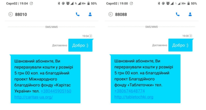 В Україні запрацювали благодійні SMS, які дають змогу переказувати гроші в благодійні організації за допомогою звичайних повідомлень. Про це на своєму Facebook повідомила засновниця благодійного фонду «Клуб Добродіїв» Марія Артеменко.