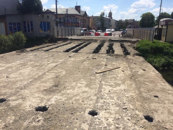 Наразі підрядники виконали фрезерування дорожнього покриття та демонтували бортовий камінь. Крім цього, продовжують облаштовувати тротуари та дощові каналізації. На території мостів демонтували перила, дорожнє покриття, накладні плити й балки, а також укріплюють конуси бетоном.