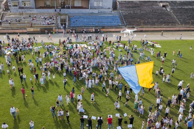 А в школі вільних і небайдужих 1 вересня розпочали з підняття дроном прапора України. Святкували День знань із оркестром «Правда Orchestra». Опісля запалили ватру і продовжували святкування пікніком вчителів, батьків і дітей.