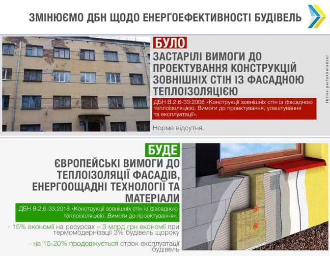 1 грудня цього року в Україні вступають в дію оновлені державні будівельні норми щодо теплоізоляції фасадів, повідомляє заступник міністра регіонального розвитку та будівництва Лев Парцхаладзе.