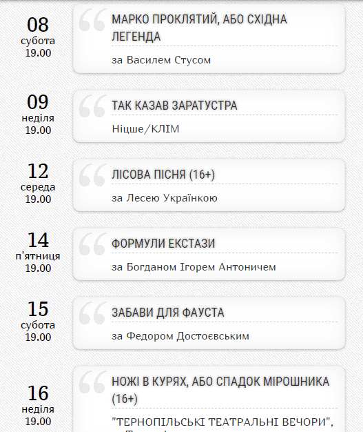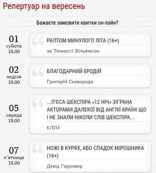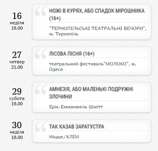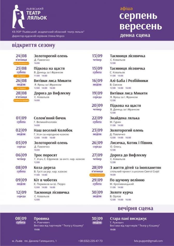 Детальніше про вистави і ціни – на сайті театру.