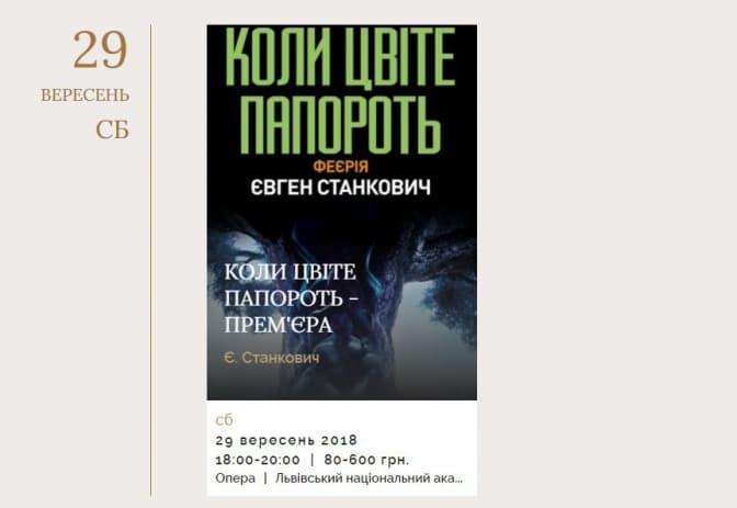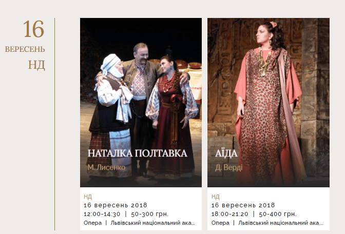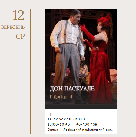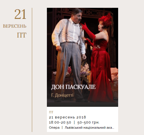 Львівський національний академічний театр опери та балету імені Соломії Крушельницької у вересні пропонує своїм глядачам такі вистави:
