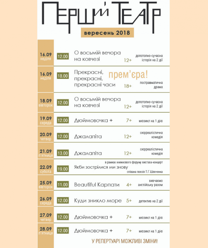 Перший театр потішить дорослих і дітей такими виставами: