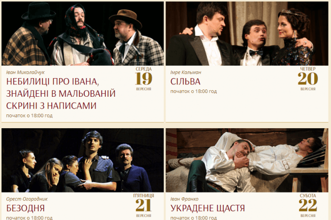 Львівський академічний драматичний театр імені Лесі Українки починає свій театральний сезон з таких вистав:
