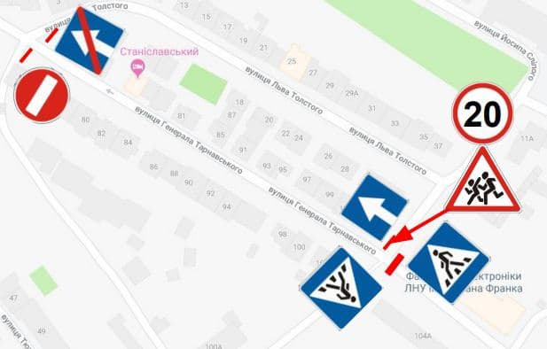 Також біля будинку №104 на вулиці Тарнавського встановлять знак 1.33 «Діти». Зміни наберуть чинності після виготовлення та встановлення дорожніх знаків.