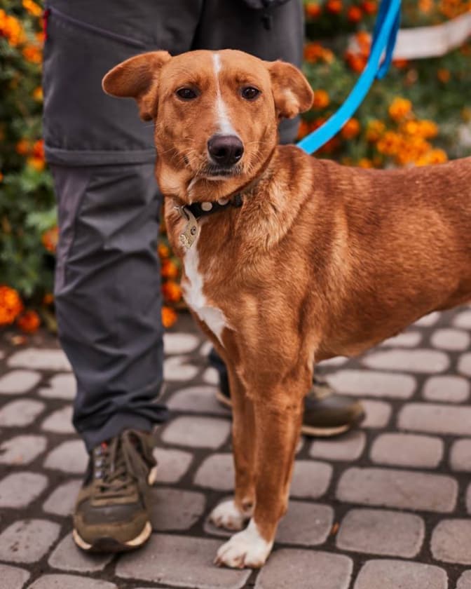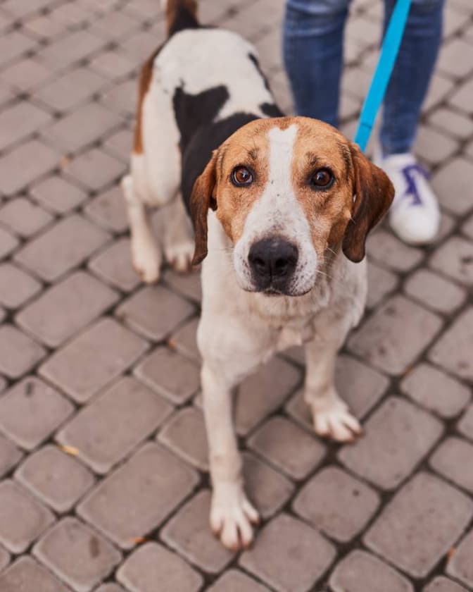 Нокс, собака середнього віку, метис гончака. Потребує родину, яка має просторе помешкання, двір, вольєр. Нокс дуже дружній, активний друг і навіть охоронець.