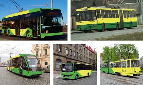 Ще один автор проекту лівреї для львівського транспорту Назарій Хітреній запропонував поєднати зелений і жовтий кольори на трамваях, тролейбусах та автобусах міста, які зобразив у трьох варіантах.