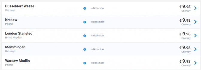 Ціни на квитки стартують від 10 євро в усі анонсовані напрямки з львівського аеропорту. Серед пропонованих напрямків — Дюссельдорф, Краків, Лондон, Меммінген та Варшава. додамо, що перший рейс Ryanair зі Львова вирушить 30 жовтня.