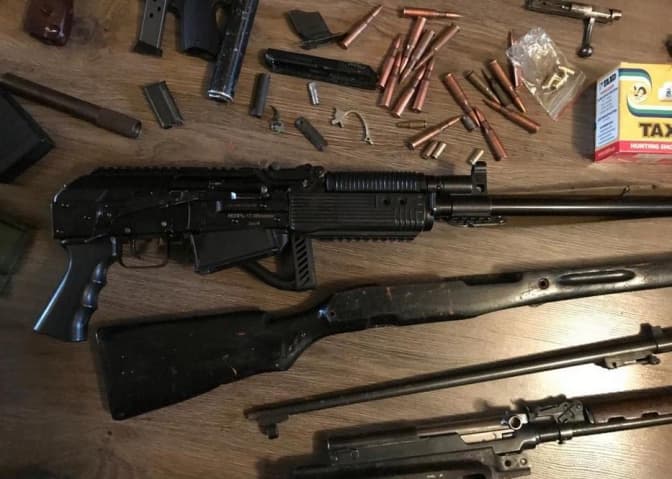 Під час обшуків у трьох областях правоохоронці вилучили великий арсенал зброї: десятки автоматів та пістолетів різних модифікацій, вибухівку, гранати, сотні набоїв різного калібру, запчастини та комплектуючі до вогнепальної зброї.