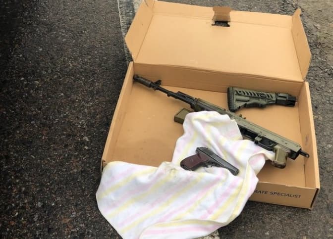СБУ затримала 4-х зловмисників під час продажу двох автоматів, двох пістолетів із набоями до них, трьох ручних гранат РГД-5 та ста набоїв різного калібру.