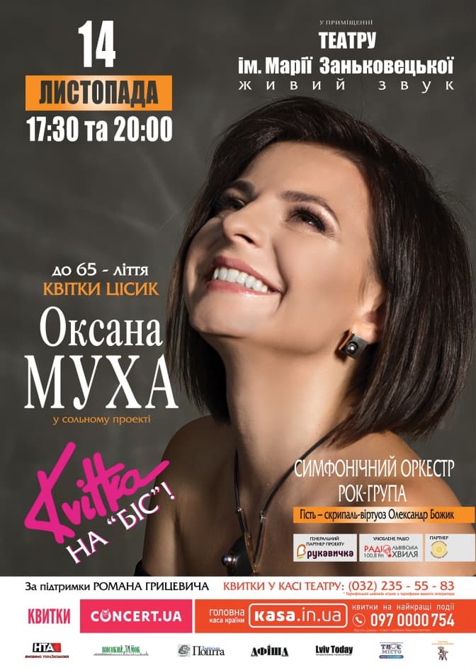 У рамках масштабного сольного проекту співачки Оксани Мухи «Дякую тобі, Квітко!», присвяченого 65-літтю легендарної американської співачки українського походження Квітки Цісик, по всій Західній Україні відбулося близько двох десятків концертів «Kvitka: Два кольори».
