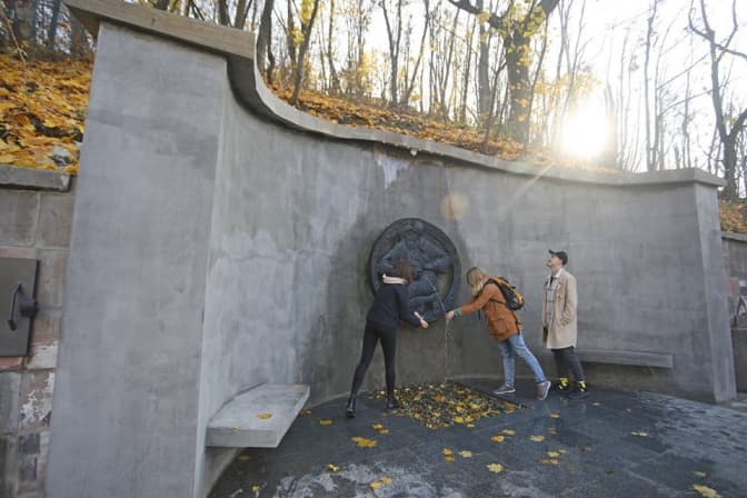 «Коли повністю підсохне стіна, а для цього треба 1−2 тижні теплої погоди, можна буде покрити її фінальним захистом покриття. Перш за все, ми хотіли, щоб тут була вода. Запит міста теж був на те, щоб фонтан функціонував. Вода, що тече позаду, не є питною. Питна лише та, яка зі струї. Вона працює на датчику: вмикається тоді, коли хтось підходить», — каже Ольга Криворучко
