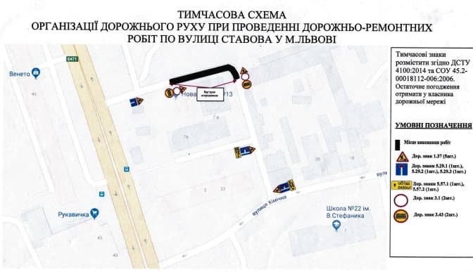 З 8 до 30 листопада у Львові буде перекрито рух транспортних засобів на вул. Ставовій, повідомили в департаменті житлового господарства ЛМР.