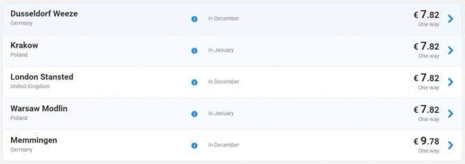Акційні квитки можна придбати у Варшаву, Краків, Лондон та Дюсельдорф. До Меммінгена вартість квитків стартує від 9,78 євро.
