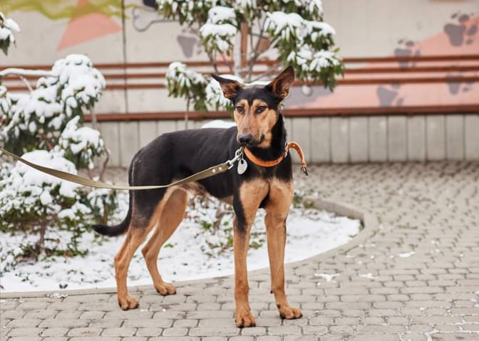 Тесса, крихітне чудо, яке чомусь блукало собі в такий холод вулицями Львова. Наразі трішки налякана, але обре адаптується. Спокійно, чемно гуляє на повідку