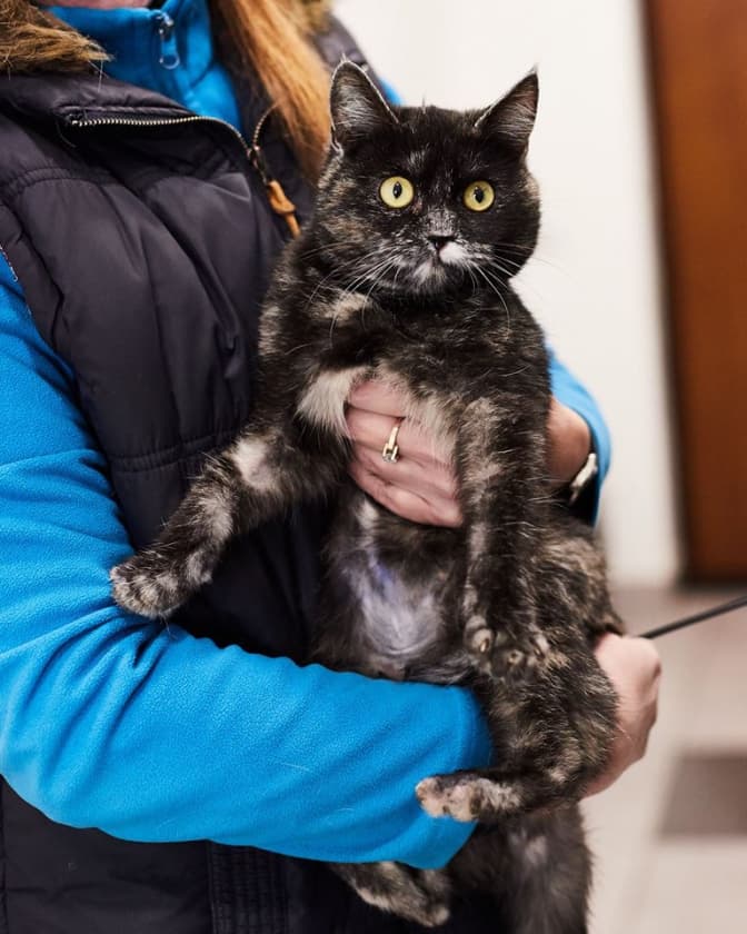 Киця Іриска теж була на лікуванні: її ліва задня лапка була травмована, киця не могла ходити. Але лікування пройшло успішно. Вона вже стерилізована, дуже активна і мила. З поведінки видно, що вона була домашньою і на вулиці перебувала тимчасово, тож найдоцільніше для неї – знову опинитися в люблячому домі.
