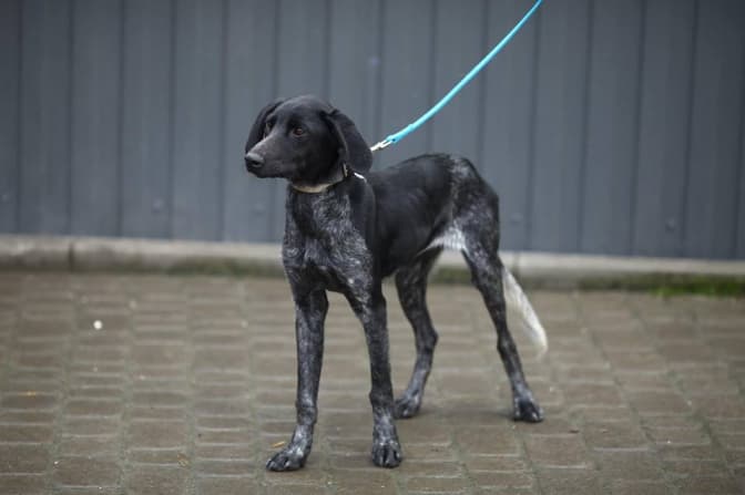 Граційна Стейсі, метис курцхаара. Молода і абсолютно ручна та соціалізована, піддається навчанню і може проживати в квартирі