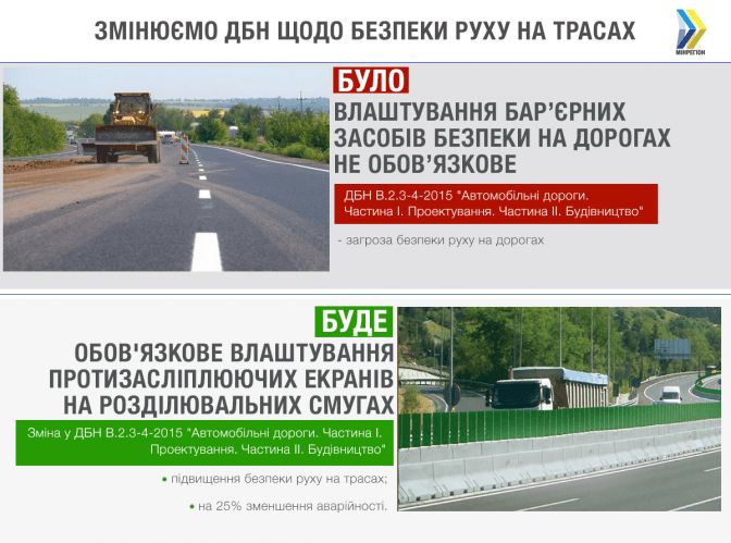 Чиновник називає одним з факторів таких змін – європейський досвід, коли кількість аварій на дорогах з протизасліплюючими екранами зменшилася на 25 %.
