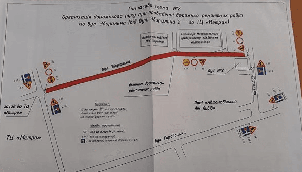 Перекриття пов’язане з капітальним ремонтом вул. Збиральної. Роботи виконує ТзОВ «ОНУР Конструкціон Інтернешнл».