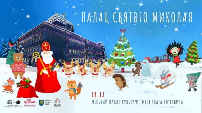 Палац Гната Хоткевича на один вечір перетвориться на Палац Святого Миколя і запропонує своїм гостям святкові квести, забавки з аквагримом, літературні читання, концерти і вистави.
