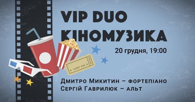 У передноворічний час дует альта і фортепіано підготував для вас вибрані мелодії з відомих кінокартин. Сергій Гаврилюк та Дмитро Микитин, які обидва є виконавцями і композиторами виконають музику до фільмів «Список Шиндлера», «Гаррі Поттер», «Зоряні Війни», «Червона скрипка», «Володар Перснів», «Гра Престолів» та серіалу «Шерлок».