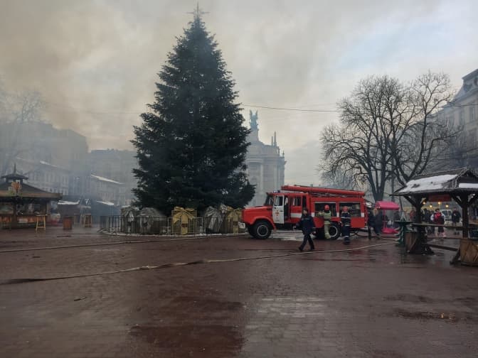 На площі біля оперного театру горить хатинка різдвяного ярмарку. Про це повідомляє кореспондент Tvoemisto.tv.