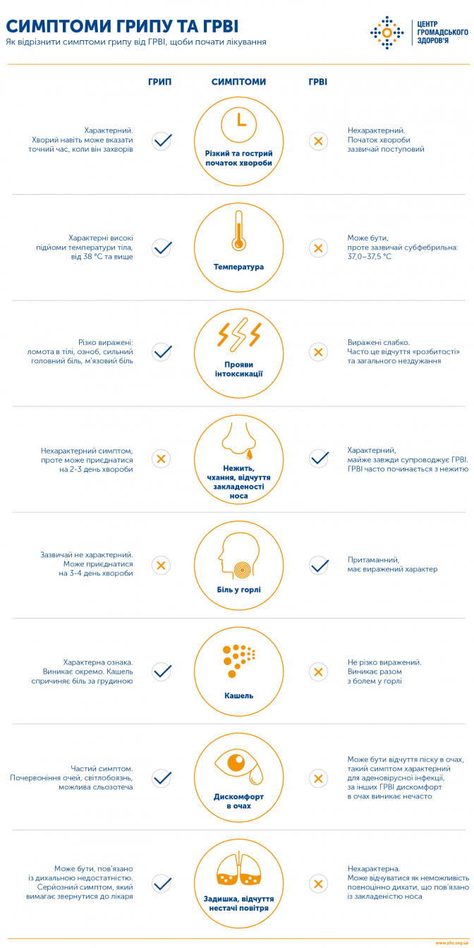 У Центрі громадського здоров’я МОЗ розповіли, як відрізнити симптоми грипу від симптомів застуди, та коли варто негайно звернутись до лікаря.