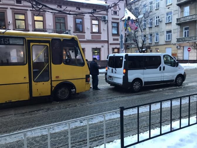 Причиною затору є ДТП за участі маршрутки №15, що сталося біля зупинки «8-а міська клінічна лікарня» приблизно о 8:30 сьогодні, 14 січня.