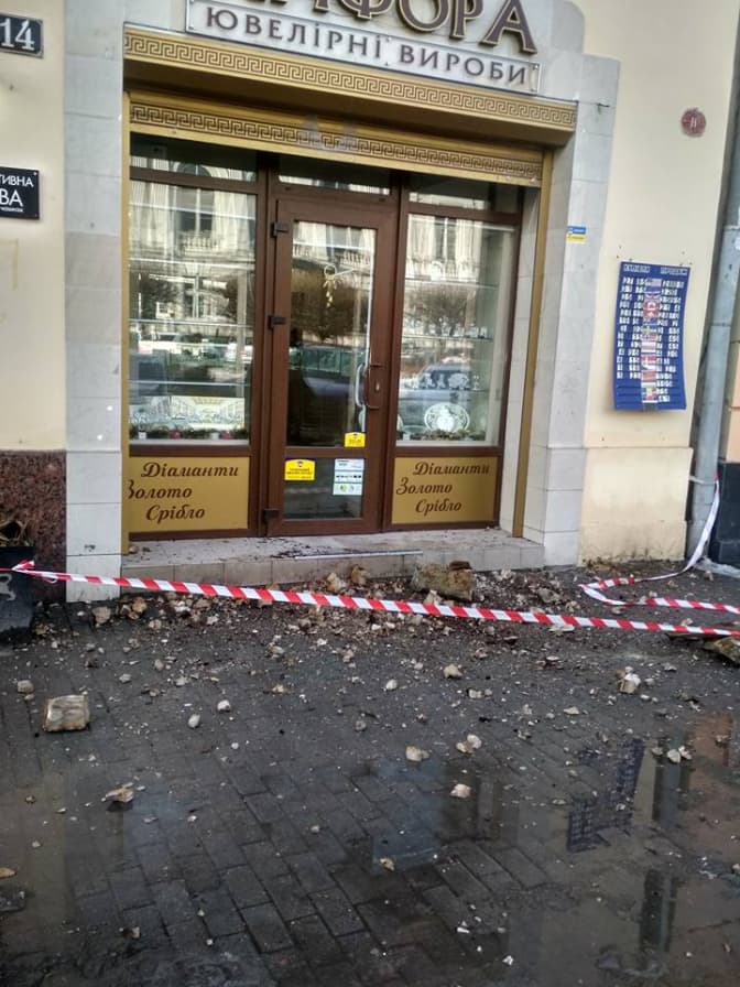 «Відшарувалася нижньої плити декоративних елементів та пошкодила захисну сітку. Минулого року захисною сіткою цей балкон обтягнуло ЛКП "Княже місто". Сміття звідти вже прибрали, всі елементи, яким також загрожує відшарування, знімуть і балкон знову обтягнуть захисною сіткою», – сказав Роман Гавчак.