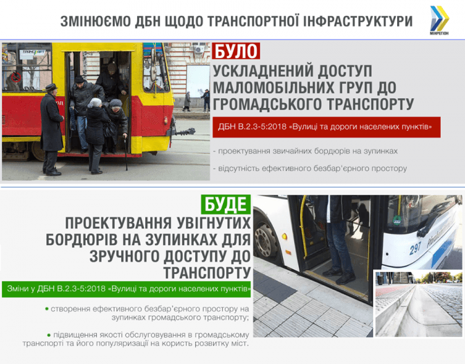 «Ми зараз вивчаємо доцільність внесення в ДБН норми щодо проектування на зупинках транспорту зручних увігнутих бордюрів, аби низькопідлоговий автобус чи тролейбус міг під’їжджати впритул до посадкової платформи і не створювати зазорів. Це потрібно для підвищення доступності громадського транспорту для людей з інвалідністю та інших маломобільних груп», – написав Лев Парцхаладзе.