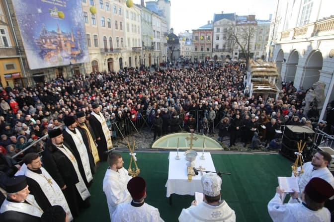 О 13:30 почалася загальноміська екуменічна молебень та освячення води. Чин освячення води очолив Високопреосвященний владика Димитрій (Рудюк), Митрополит Львівський і Сокальський Православної Церкви України.